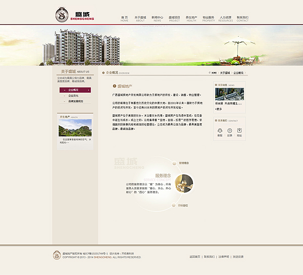 廣西盛城房地產開發有限公司致力于房地產的開發、建設、銷售、物業管理。 公司的前身位于有著悠久歷史文化的中原大地,自2001年以來一直致力于房地產的投資與開發,至今已有10余年的房地產投資與開發經驗。 盛城房產位于美麗的壯鄉。沐浴著壯鄉風情,盛城房產在鳥語中落成,在花香中誕生與成長。成立之初,公司秉承著“堅持、自信、反思”的哲學思想,依循踏實的做事風格和誠信的經營理念,立志成為最具公信力品牌、最具美譽度品牌、最誠信品牌。
