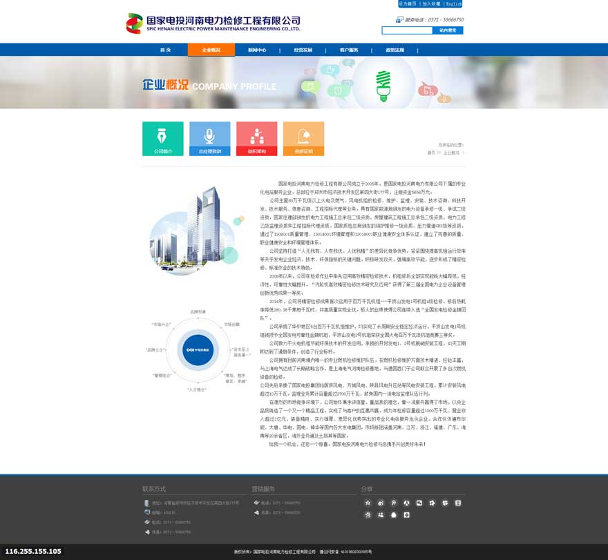 國(guó)家電投河南電力檢修工程有限公司成立于2005年,是國(guó)家電投河南電力有限公司下屬的專業(yè)化電站服務(wù)企業(yè)。總部位于鄭州市經(jīng)濟(jì)技術(shù)開(kāi)發(fā)區(qū)第四大街177號(hào),注冊(cè)資金5658萬(wàn)元。