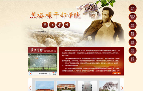 焦裕祿精神專題網站建設完成并上線zhanguan.jylgbxy.com.cn,焦裕祿干部學院建成于2013年7月,是中組部確定的全國13所地方黨性教育特色基地之一。學院位于蘭考縣城東北部,占地面積185畝,建筑總面積3.9萬平方米,可同時容納700人學習培訓,400人住宿。