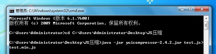 使用方法可從cmd到進入yuicompressor.jar所在磁盤,我以自己的yuicompressor-2.4.2.jar為例: