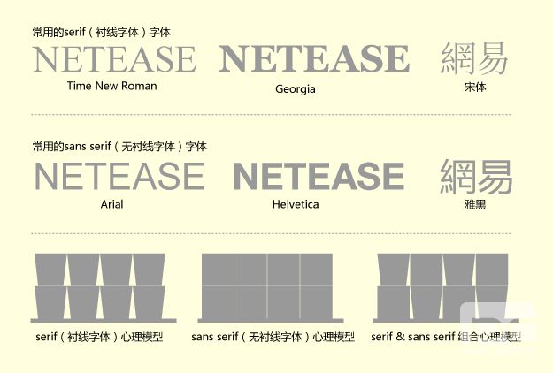 從心理模型可以看出,常規的組合排列中,無襯線字體比襯線字體的常規組合性更好一些,但處理的不好反而會呆板。