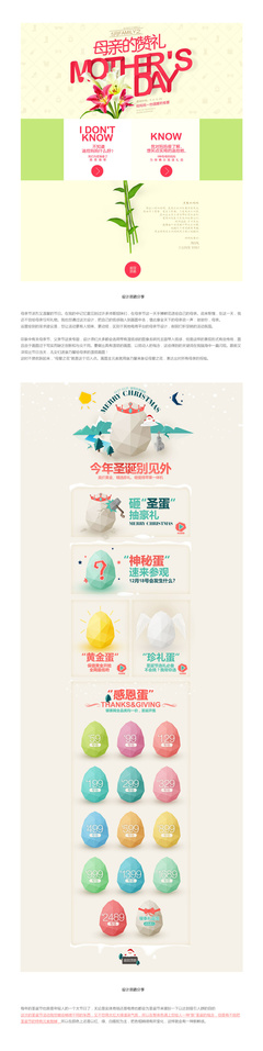 01.左圖是我當(dāng)時(shí)做的一個(gè)圣誕節(jié)的整體創(chuàng)意頁(yè)面,以禮結(jié)的形式貫穿整體設(shè)計(jì)中。當(dāng)時(shí)做的時(shí)候,就把整體的禮結(jié)元素放大化,做為主元素去表現(xiàn);