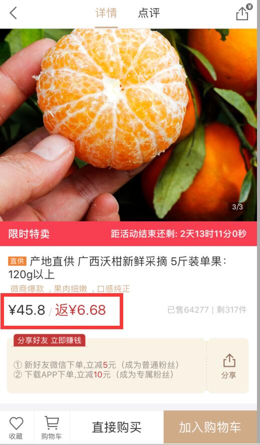 3、VIP用戶和普通用享受的商品價(jià)格是不同的,普通用戶看到是價(jià)格綜合,VIP用戶則是將傭金分離出來(lái)的價(jià)格,即VIP用戶可得到朋友購(gòu)物的返傭。
