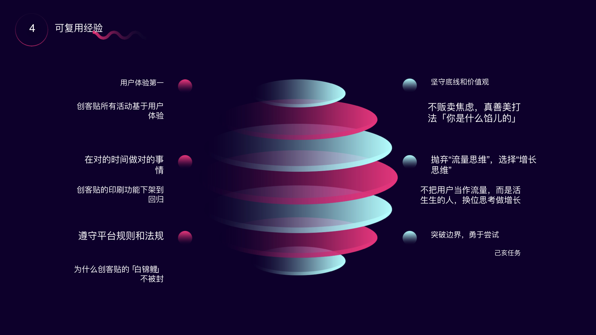 不,我們要的是后續(xù)的持續(xù)增長(zhǎng),以及用戶的長(zhǎng)期使用,那么,我們就必須要拋棄流量思維,真的把每一個(gè)用戶當(dāng)作活生生的人,而不是“這來了一個(gè)流量”。這也是我反復(fù)提到的“共情”,不要去做自己都不能接受的活動(dòng),不要去做自己都不喜歡的活動(dòng)。