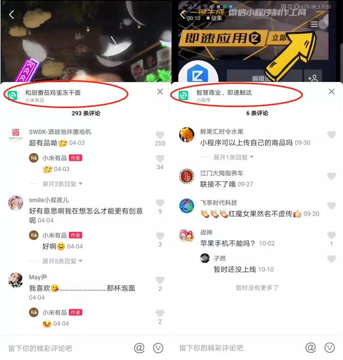 因此,未來(lái)運(yùn)營(yíng)好評(píng)論區(qū)這塊區(qū)域,是很有可能成為抖音小程序商戶的“殺手锏”的,簡(jiǎn)單如借助評(píng)論區(qū)置頂留言引導(dǎo)用戶點(diǎn)擊小程序,復(fù)雜點(diǎn)的在評(píng)論區(qū)利用小程序做抽獎(jiǎng)活動(dòng)、話題活動(dòng)等,這是一塊有待發(fā)掘的潛力區(qū)域。