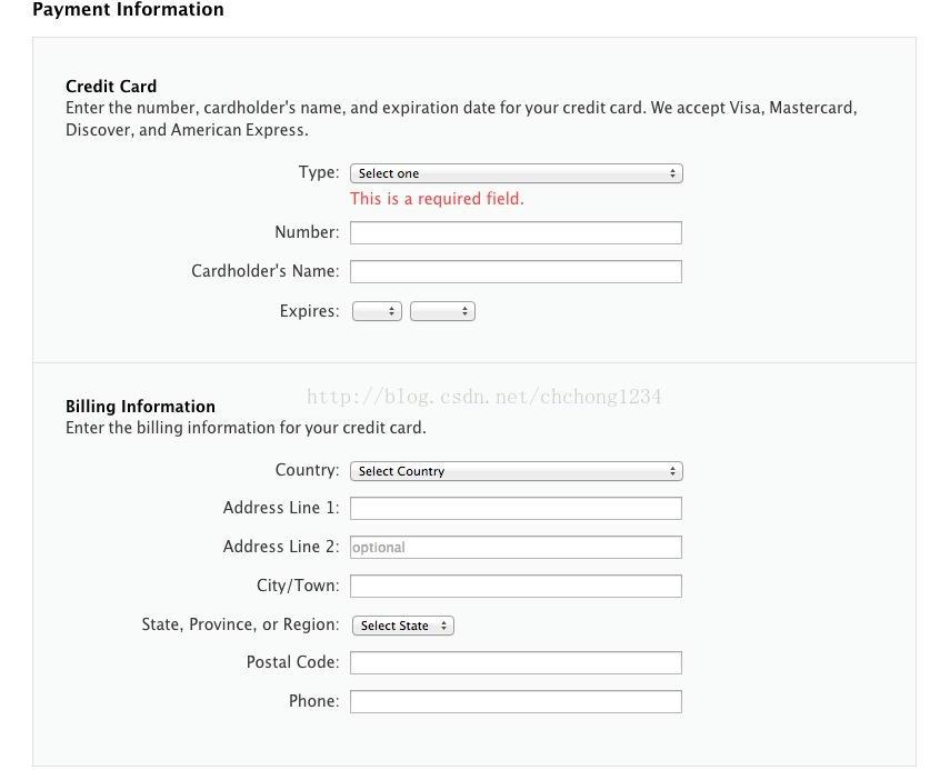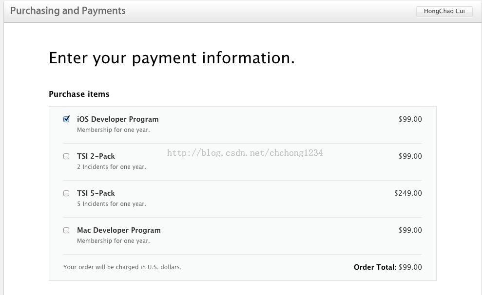 9. 按照蘋果發的郵箱里的內容操作下一步,首先同意他們的證書和協議,然后填寫信用卡信息,如下圖:
