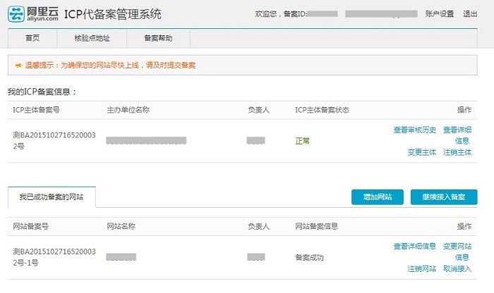 登錄備案系統,填寫備案的域名及主體證件信息,系統核實域名及主體證件號碼未存在已備案記錄,判斷此次備案為首次備案。
