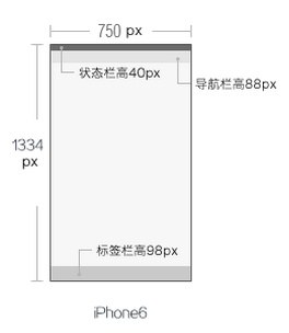 1、 iPhone6的界面布局是:屏幕是4.7英寸的,設計稿的大小為750x1334px。