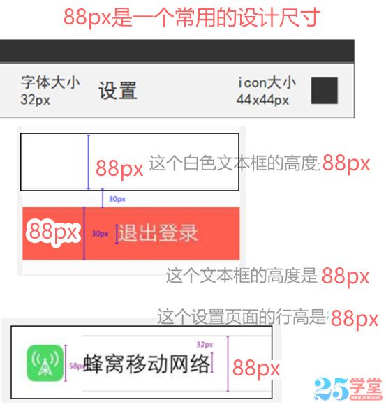 6、常用的可點擊高度,在iPhone6的原型圖上,統一成88px。在iPhone6設計稿中,88px是一個常用的設計尺寸。