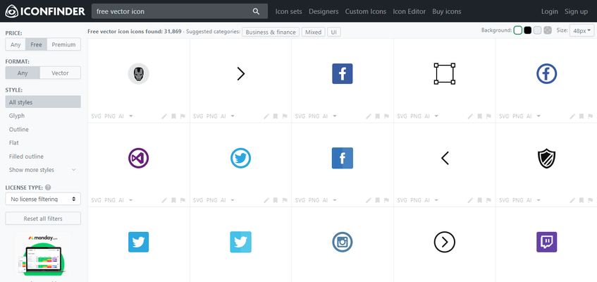 FlatIcon擁有超過961,000個免費矢量圖標,被稱為網絡上最大的免費矢量圖標數據庫之一。 它的數據庫中包含PNG,SVG,EPS,PSD和BASE 64格式的免費圖標,因此無論您正在尋找什么類型的矢量圖標,您都可以在這里找到需要的資源,包括其中一些最受歡迎的各種風格的免費社交媒體圖標套裝。