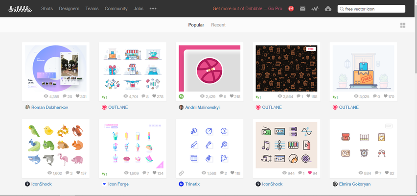 作為全球最大的設計師分享平臺,Dribbble上每天都有設計師上傳優質的設計作品,當然也不乏優質的免費矢量圖標資源。配合正確的關鍵詞搜索,你會發現很多意想不到的驚喜。