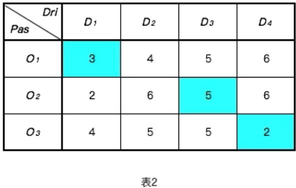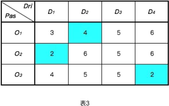 在考慮實時路況下,表1給出了每一位司機到達乘客上車點所需要的時間,系統該如何進行一一匹配呢?
