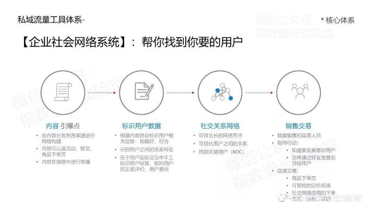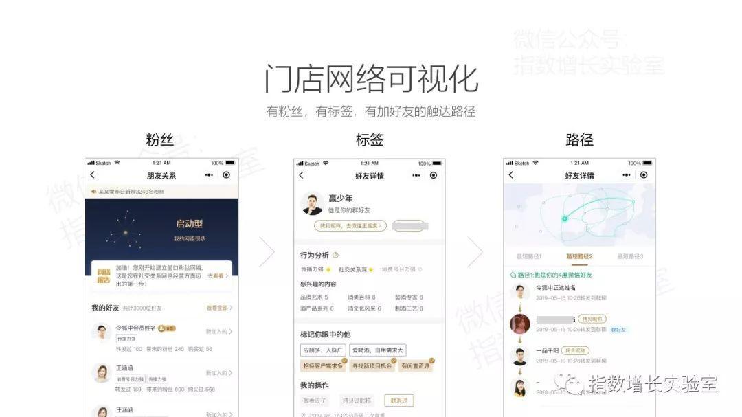 整個私域流量體系從現(xiàn)有的門店店主和門店的忠實(shí)會員出發(fā),通過內(nèi)容分享和傳播機(jī)制,在傳播過程中不斷跟蹤和繪制門店的粉絲網(wǎng)絡(luò)的私域流量,并從中找到關(guān)鍵節(jié)點(diǎn),即發(fā)現(xiàn)有價值的用戶。