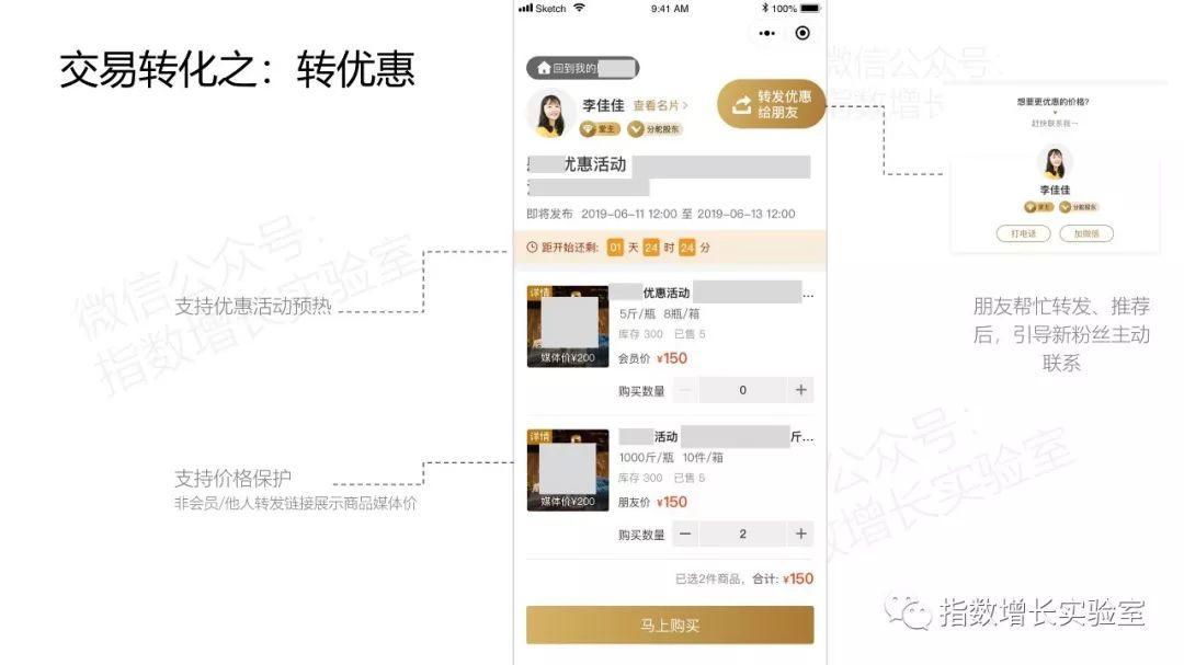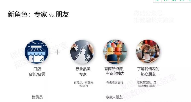門店店長和員工將會使用傳統(tǒng)的銷售能力(這是線下多年沉淀的銷售能力,可在這套體系中直接復(fù)用),將不是好友的關(guān)鍵用戶想辦法發(fā)展成為一度好友(即加到關(guān)鍵節(jié)點(diǎn)用戶的微信),并且進(jìn)行銷售轉(zhuǎn)化。
